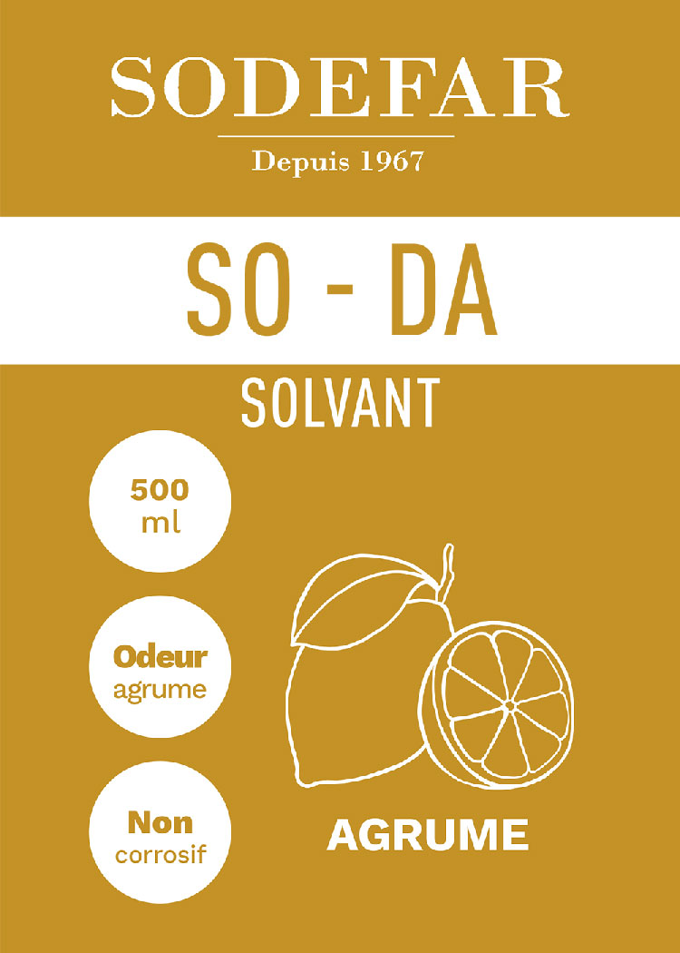 Le SOLVANT SO-DA est un nettoyant/dégraissant spécialement conçu pour nettoyer les surplus de colles.